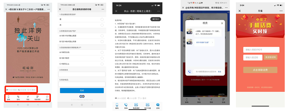 通过项目的优质文章进行社交营销传播,插入多个互动功能按钮,便于客户随时与置业顾问互动或留下个人信息。