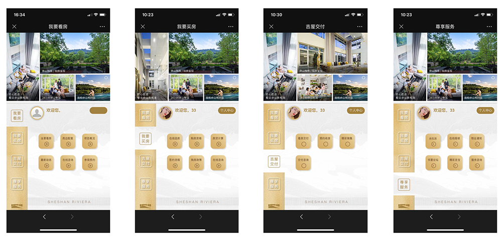 吉宝置业上海区域佘山御庭及季景铭郡两个项目的一站式客户体验中心,均有我要看房、我要买房、吉屋交付、尊享服务四个大模块,看房模块能够让客户全方位的了解房屋内部装修、周边配套、项目动态等信息,买房模块帮助客户快速了解购房资格、房贷信息,签约流程等,交付模块帮助客户深入了解交付户型,进行预约收房、咨询等,服务模块则为业主提供在线报修,活动预告、发声论坛等贴心管家服务。