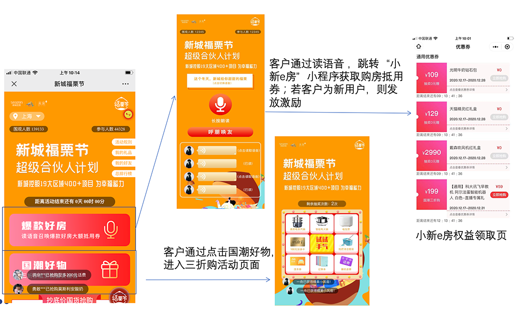 总计带来了50万+的浏览人数,带来7.6万+的分享,最终为新城长三角八大区域公司留存用户资产近20万,获取用户手机6900+组;为小程序导流近4000组(为排重后的新用户)最终成交30组。