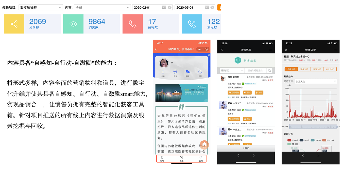 传统营销手段导致楼盘滞销的问题严重,有效客户太少,到访量不足,联实集团在华的首个养老项目更是客户基础较弱,加之疫情扰乱,深受售楼处现场人气不足的问题困扰。如何有效解决客户资源问题,如何更广泛快速的实现宣传推广及渠道拓展,都是联实关注的重点。